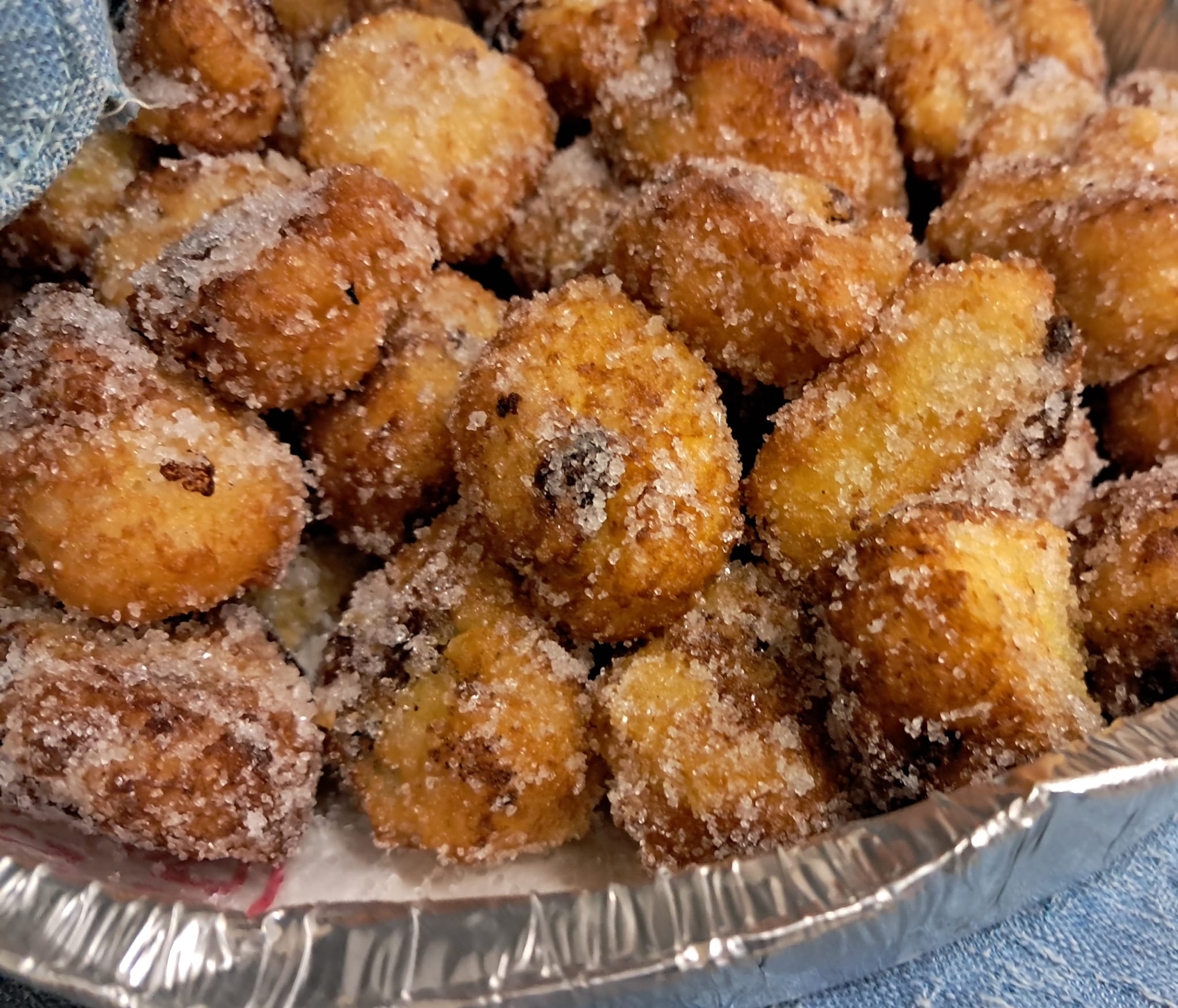 Lo zucchero semolato veniva aggiunto quando erano tiepide facendole rotolare generosamente. Per i più esigenti c’era lo zucchero a velo, ma si diceva che non era da intenditori.