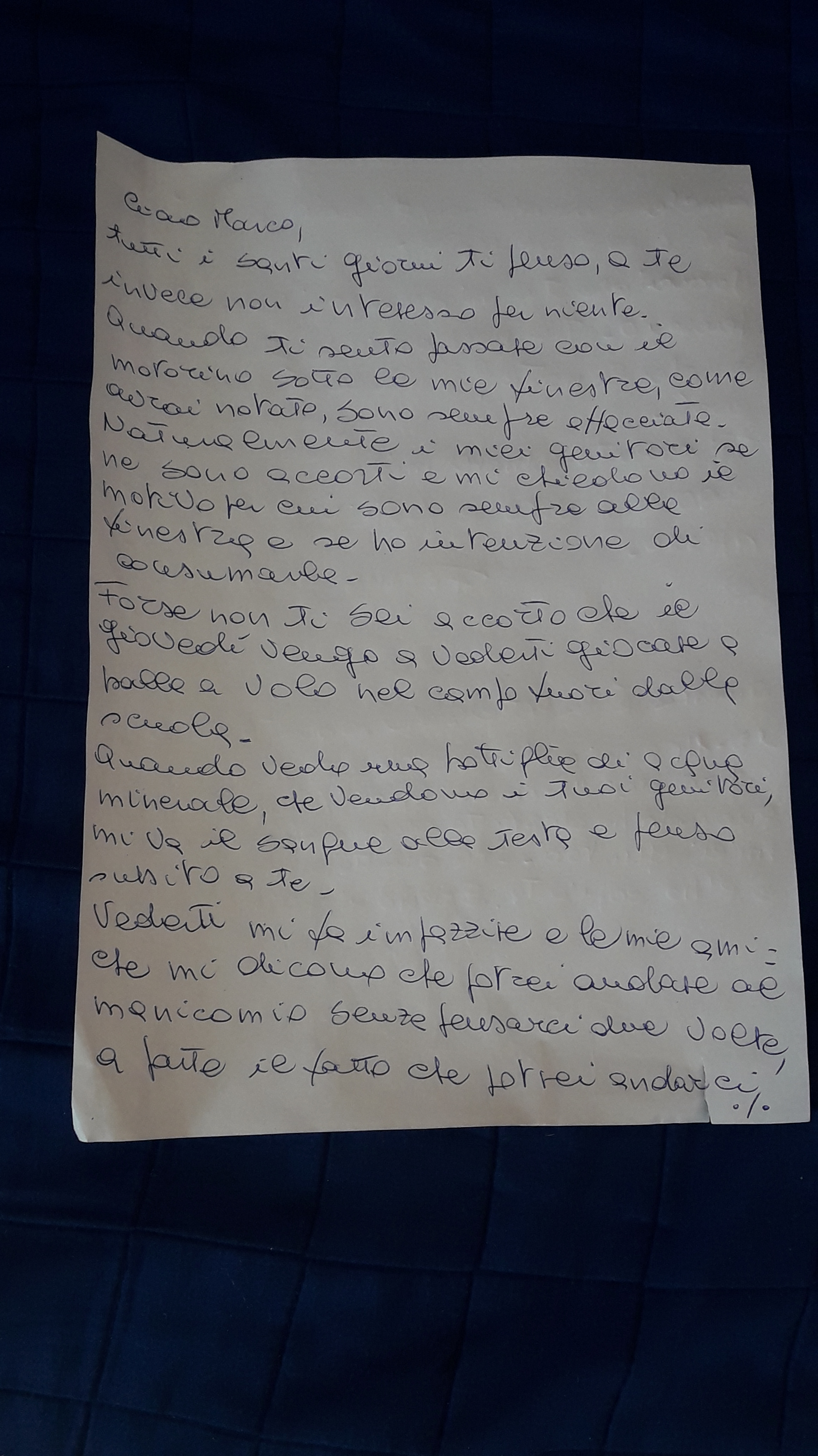 Lettera scritta a mano da Sandra Conticini
