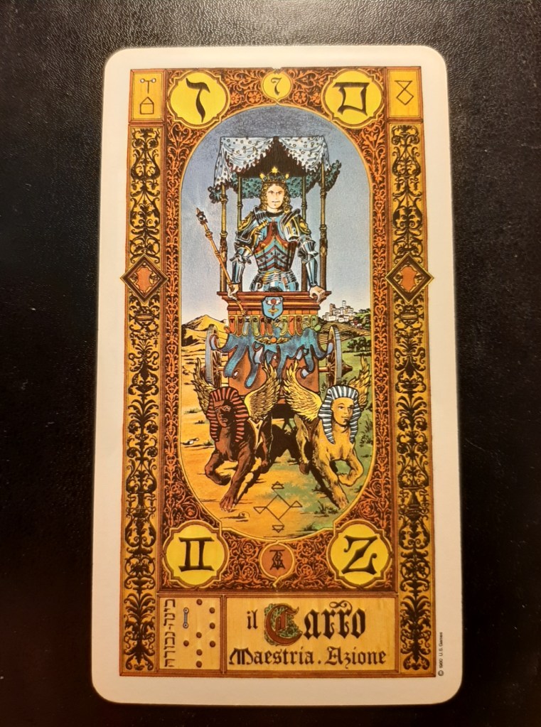 E’ una carta che si può abbinare al mio segno zodiacale che è l’ariete. Personalmente faccio fatica però a rispecchiarmi sia nella carta che nel segno; ma è pure vero che nella mia vita ,o per forza o per amore, ho dovuto prendermi responsabilità e decisioni nascondendomi spesso dietro una falsa sicurezza scambiata spesso per fermezza e potere decisionale. A questo punto della mia vita avrei voglia di tirare i remi in barca e riposarmi, Ma riuscirò a mettermi da parte? Non mi conosco ancora o mi conosco troppo bene. Vedremo…