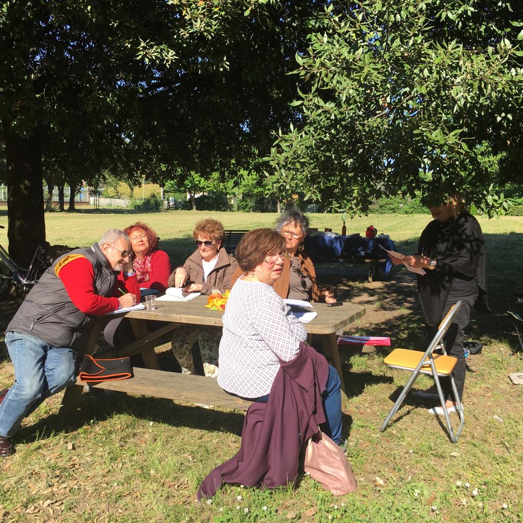 …un caldo vento estivo, un cielo così azzurro da intimorire, il calore degli amici di sempre, un cibo divorato, un bicchiere di vino in più, sorseggiato con serenità…la voglia di camminare “per far buio”.