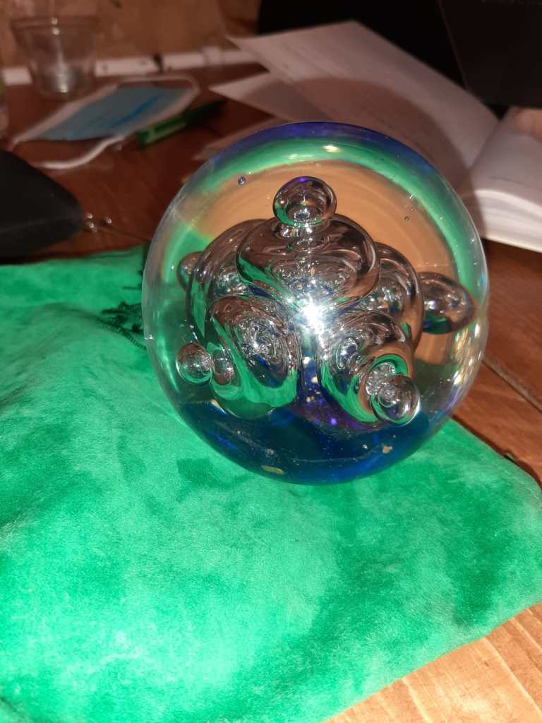 Bella, lucente, misteriosa con le forme rotonde all’interno, per vedere immagini del futuro, del passato e altro. Immaginare, immaginare, sognare………….